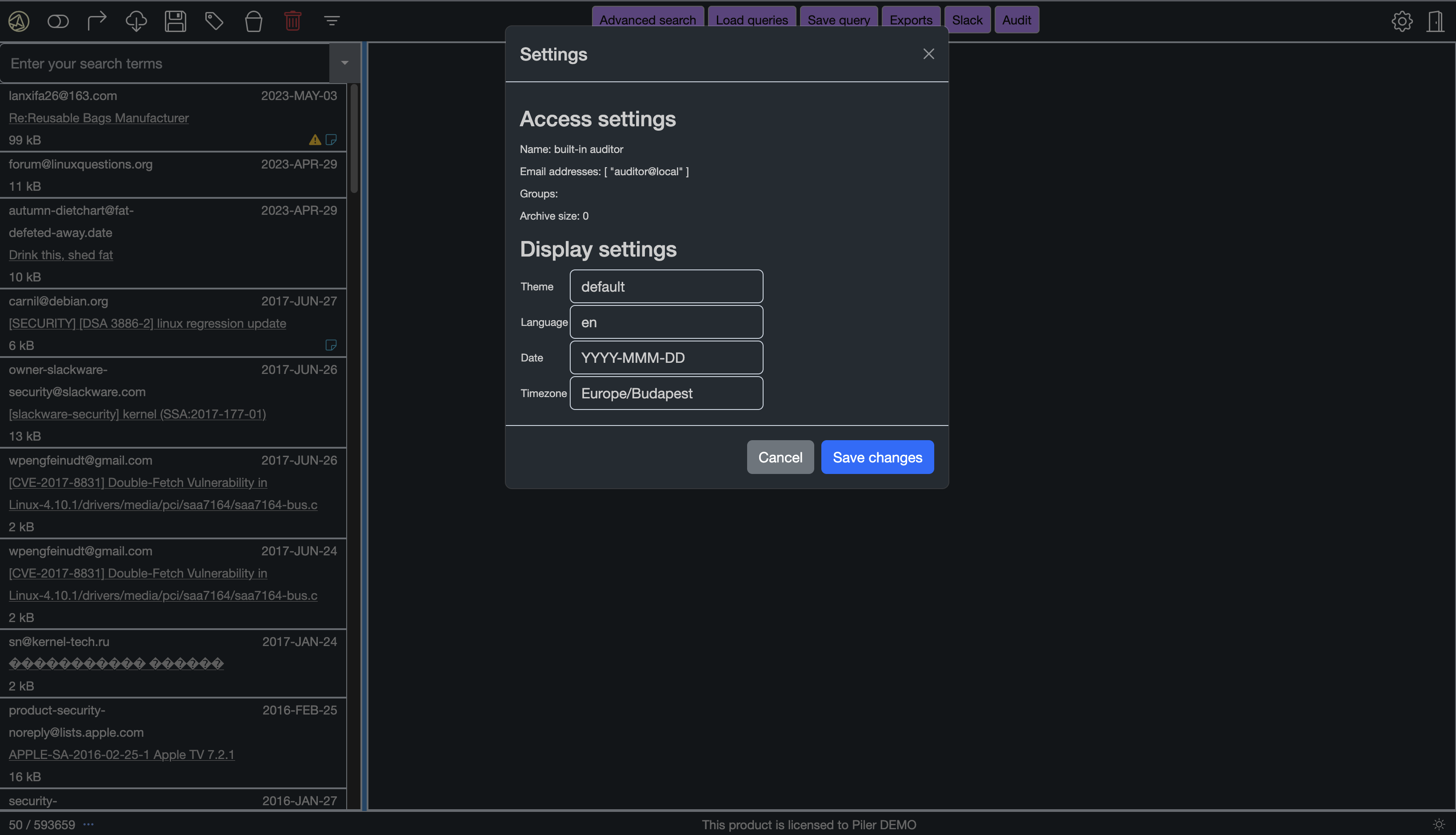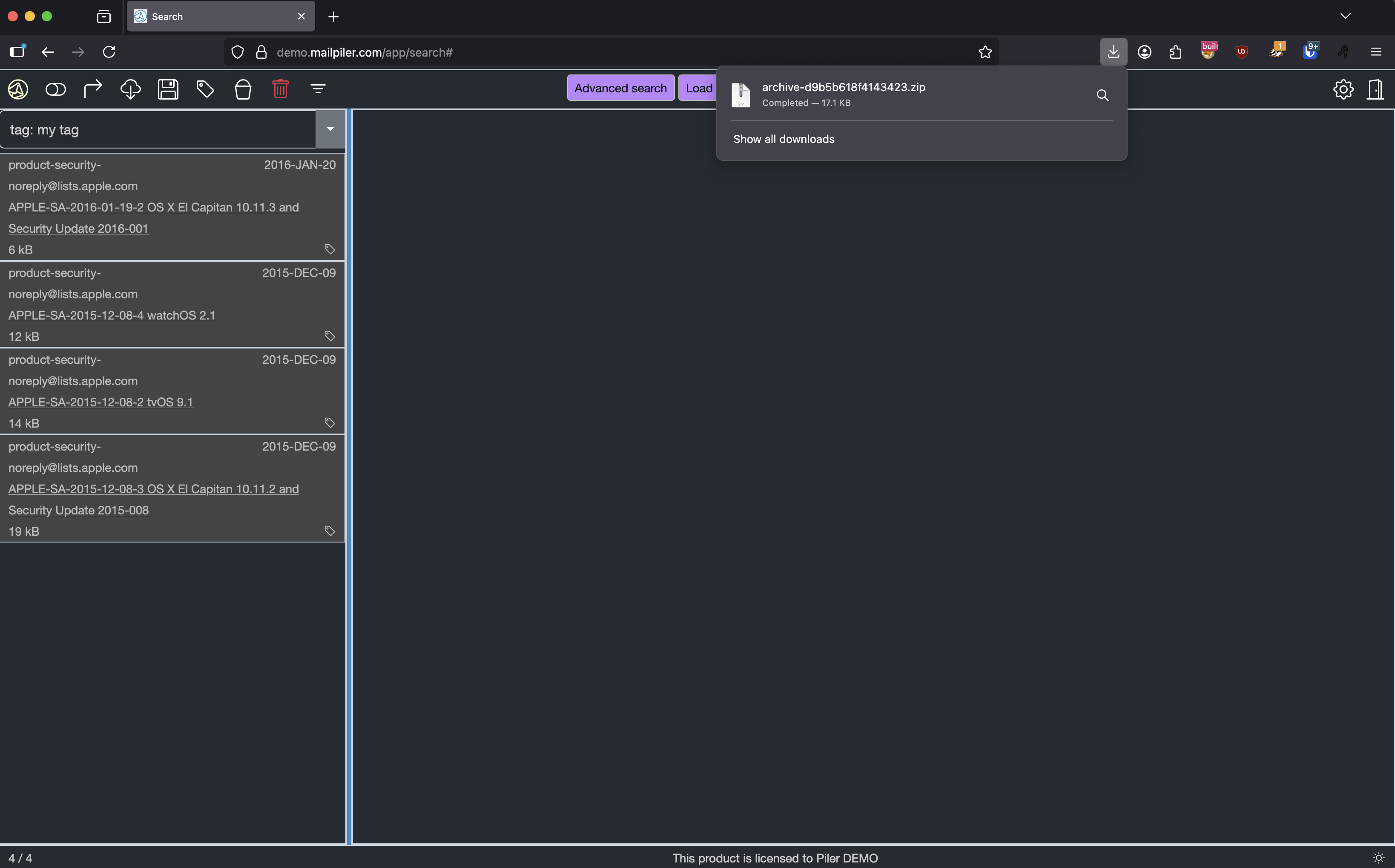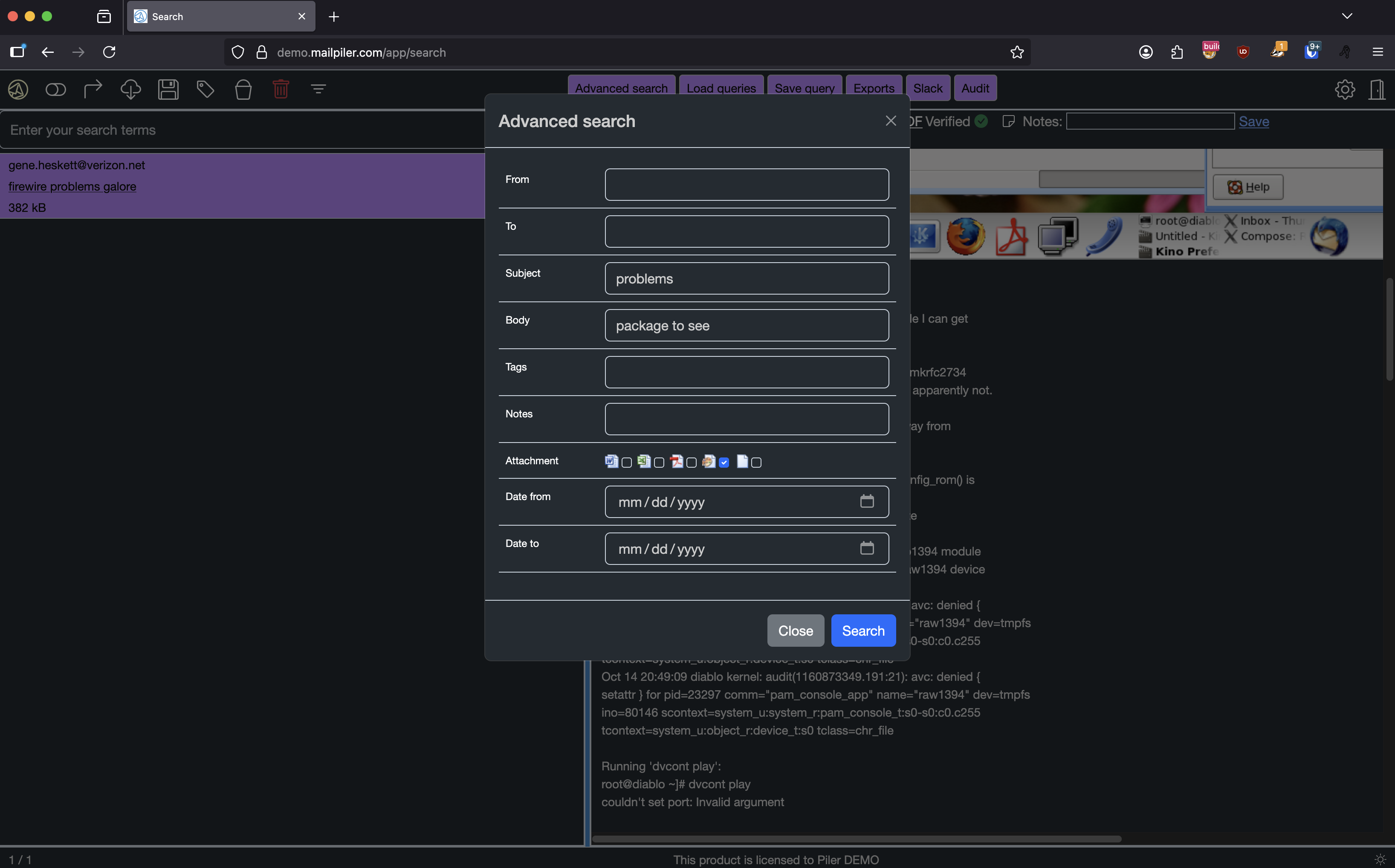 An important part of the archiving process is called indexing. It allows you to find the archived emails later based on search terms. Piler provides a web based UI that can be accessed using a web browser, eg. Firefox, Chrome, etc.