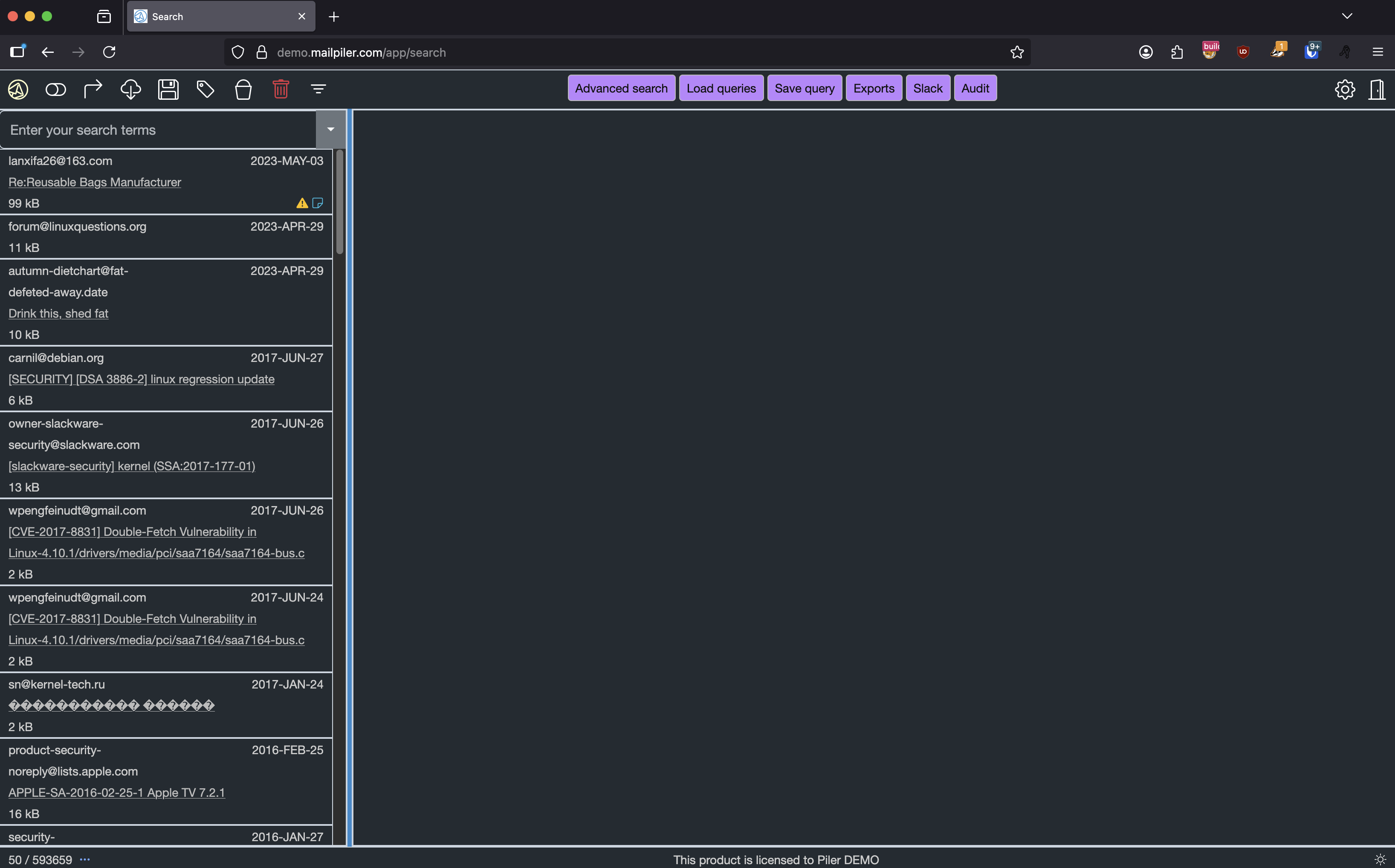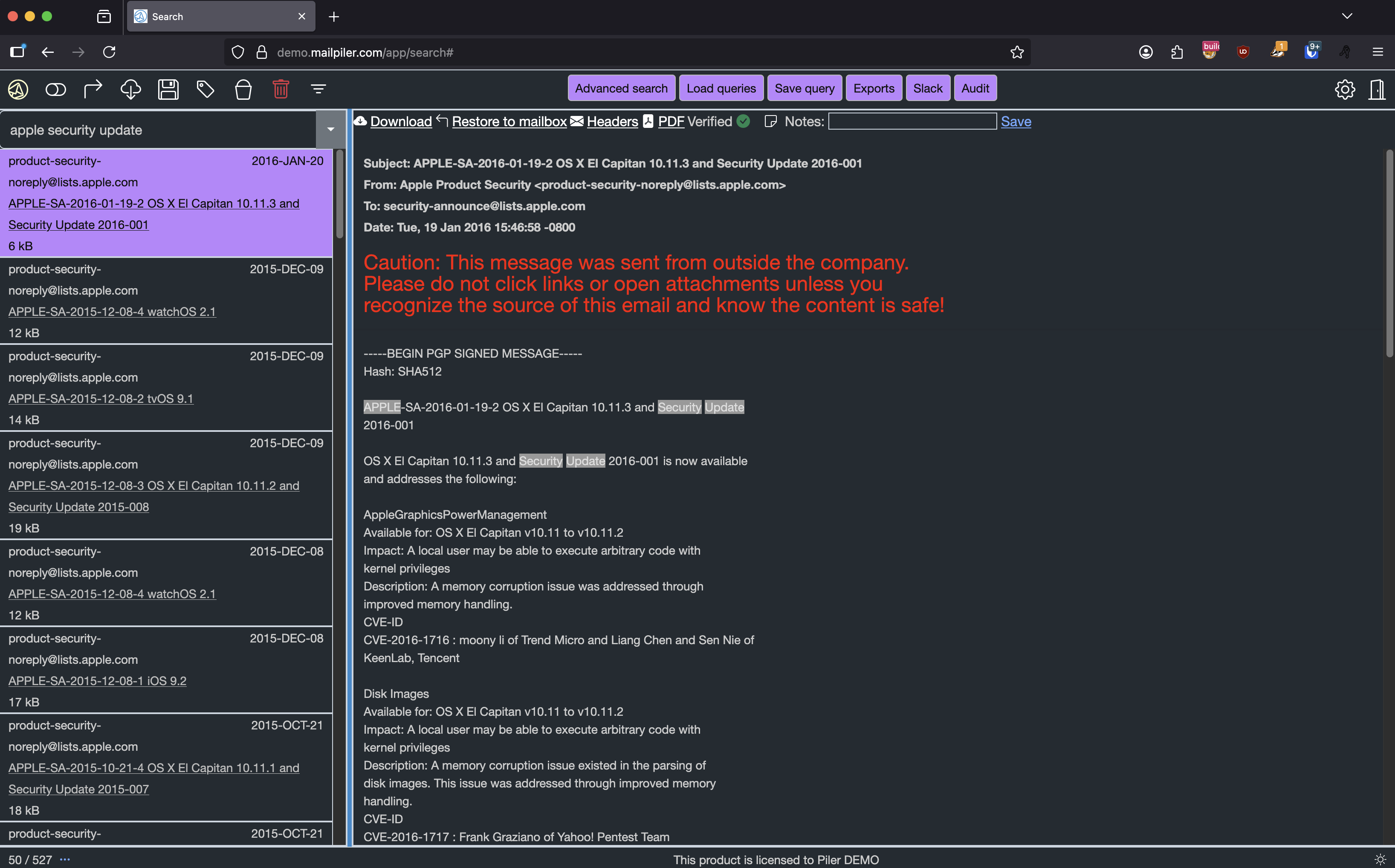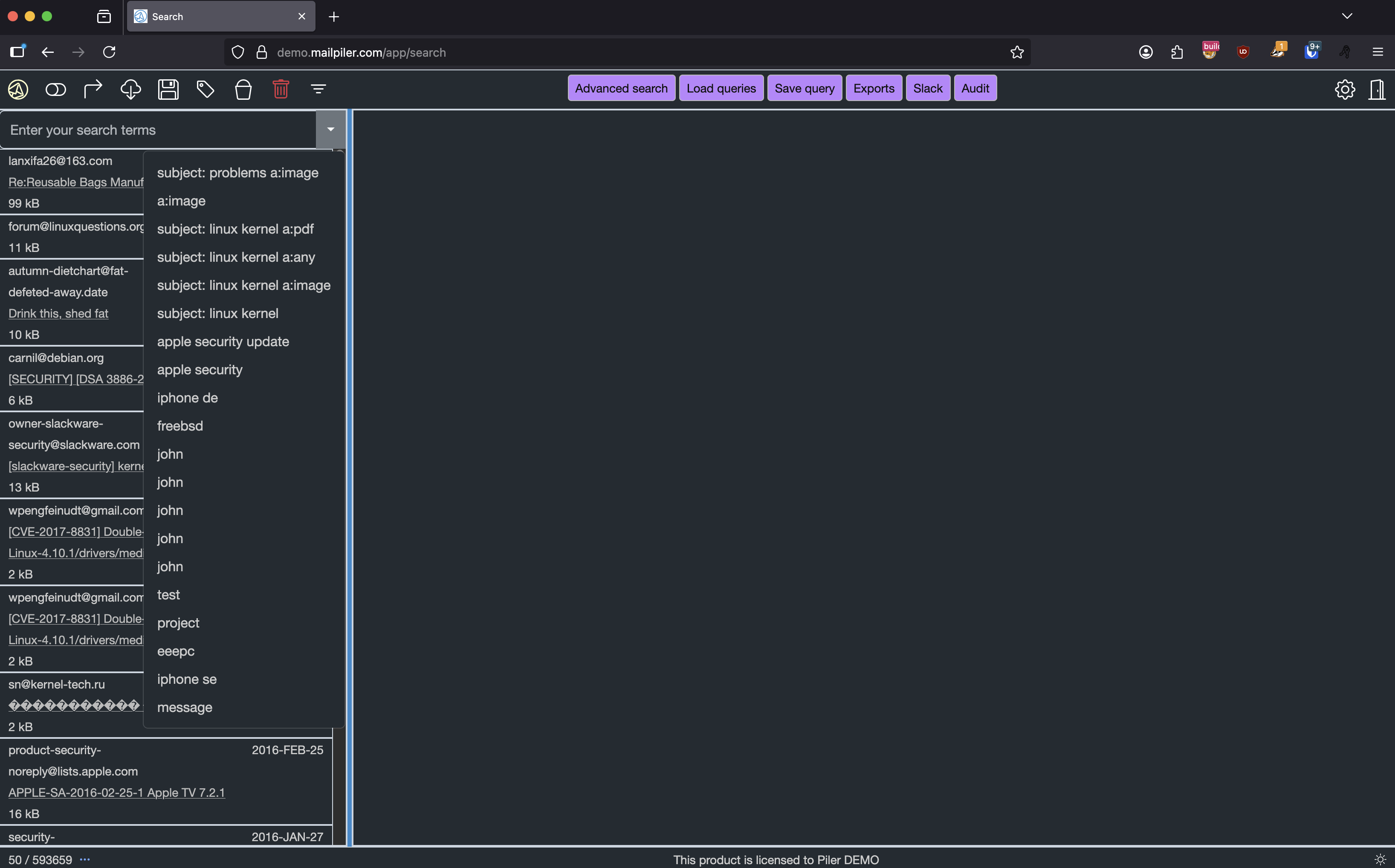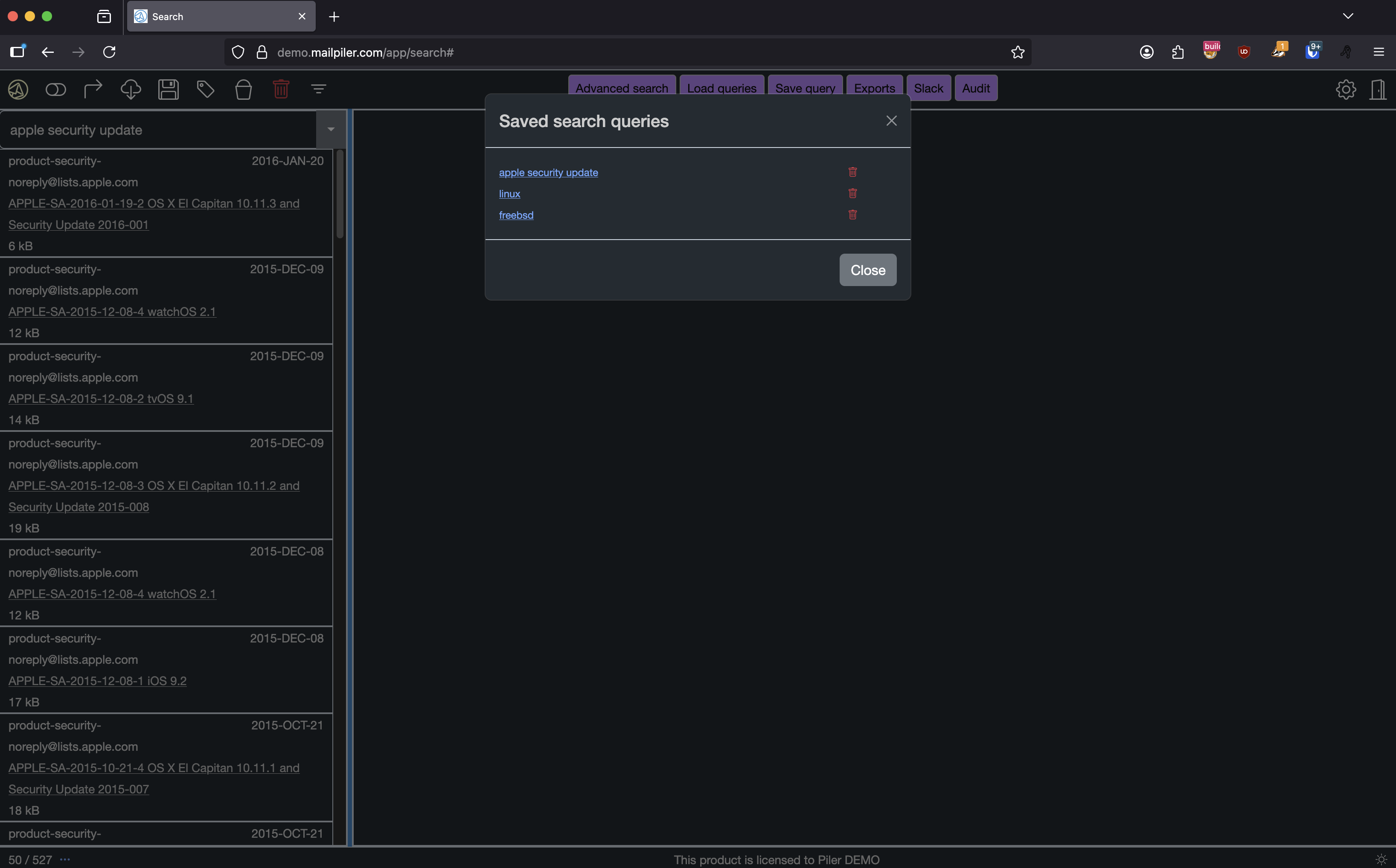An important part of the archiving process is called indexing. It allows you to find the archived emails later based on search terms. Piler provides a web based UI that can be accessed using a web browser, eg. Firefox, Chrome, etc.